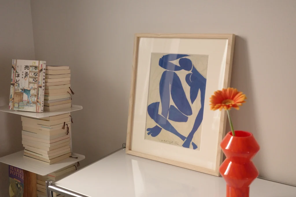 それはまさしくマティス本人が言うように、人々への”癒し”を前提に空間を装飾するアートだからだと思います。冒頭で「この絵のよさがわからない」と言っていた筆者ですが、マティスの絵を繰り返し見続けた結果、今では部屋の一角にマティス作品がいます。